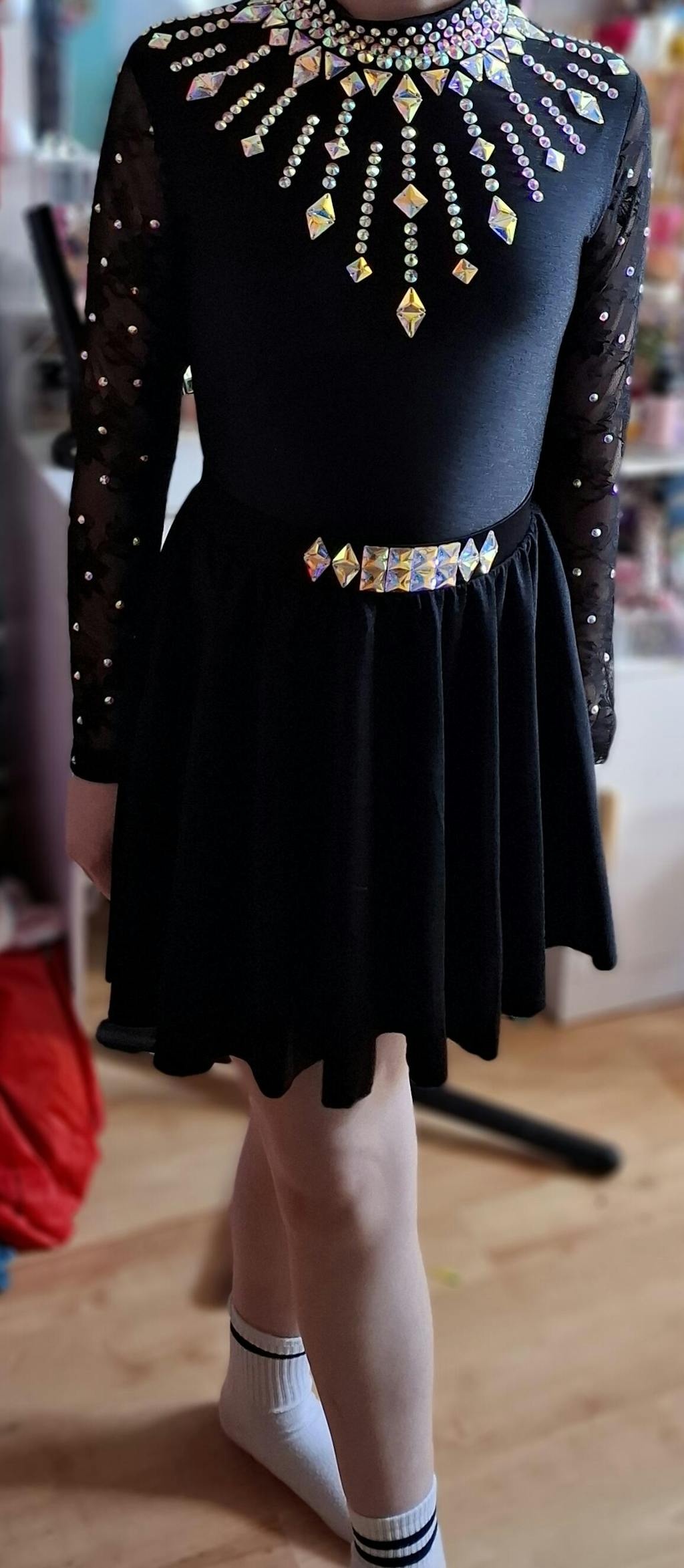 lovely embellished lace sleeves. Very easy to customise the leotard and looks great.